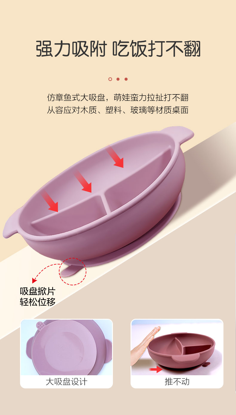 嬰兒吸盤式硅膠分格碗卡通學(xué)吃飯訓(xùn)餐具