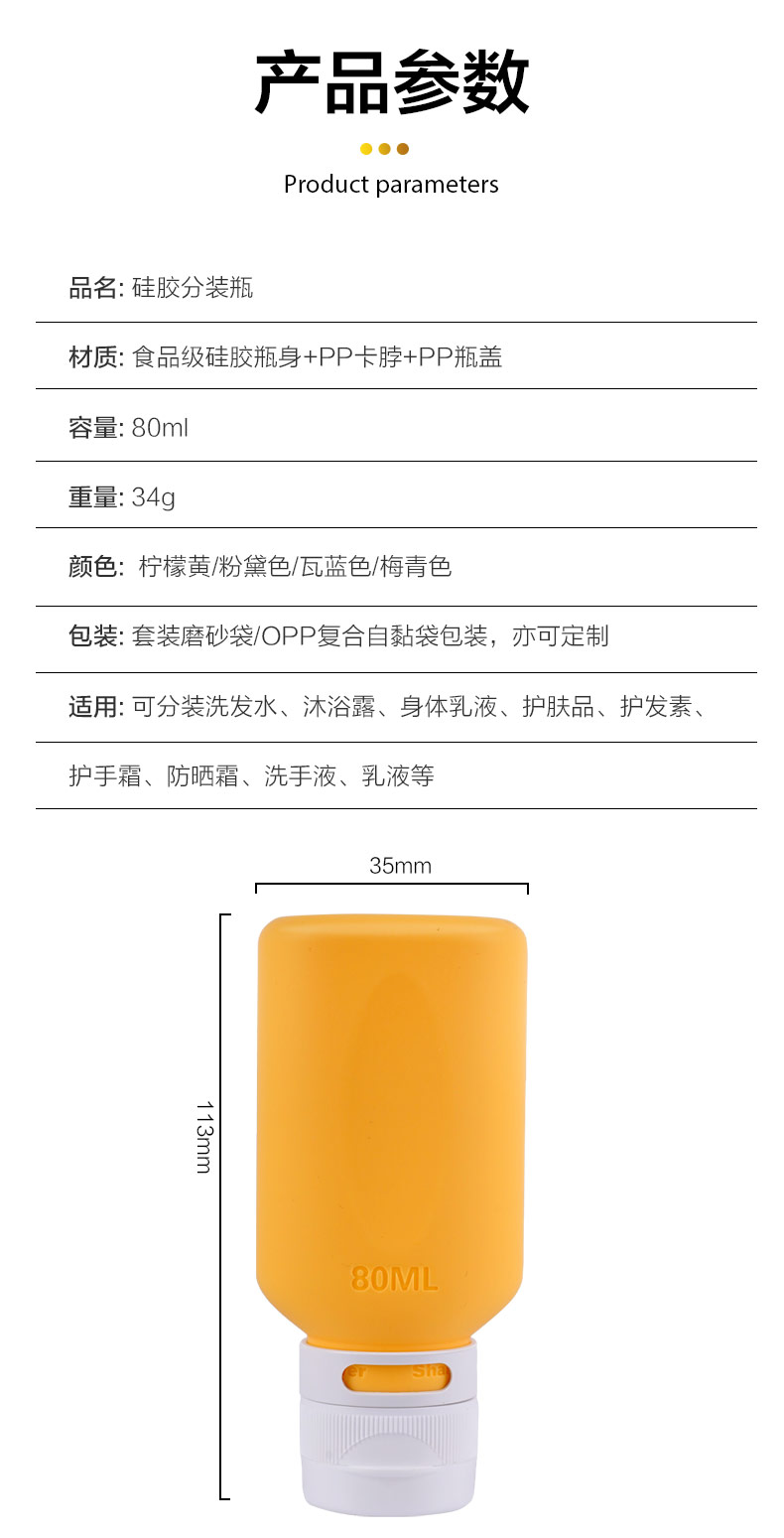 硅膠乳液分裝瓶旅行便攜包裝80ml擠壓式乳液化妝品收納瓶