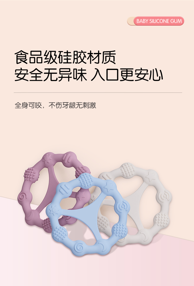 您的位置:首頁 > 產(chǎn)品中心 > 硅膠嬰童用品 > 牙膠 > 嬰兒硅膠牙膠防吃手食品級嬰兒玩具配件母嬰牙膠